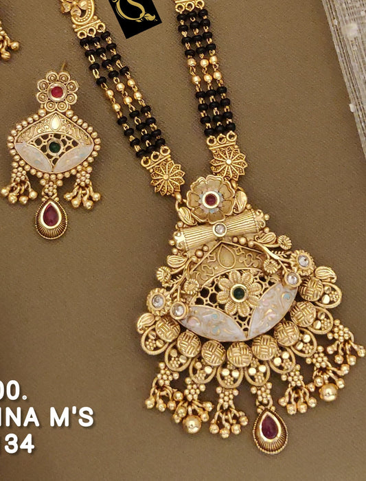 Brass High Gold Rajwadi Mangalsutra with Earrings