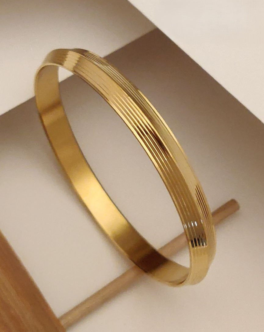 This is a beautiful golden Punjabi Kada with a spiral design all around. It looks shiny and stylish, and both men and women can wear it. The Kada is made with good quality material and has a strong, long-lasting golden color.