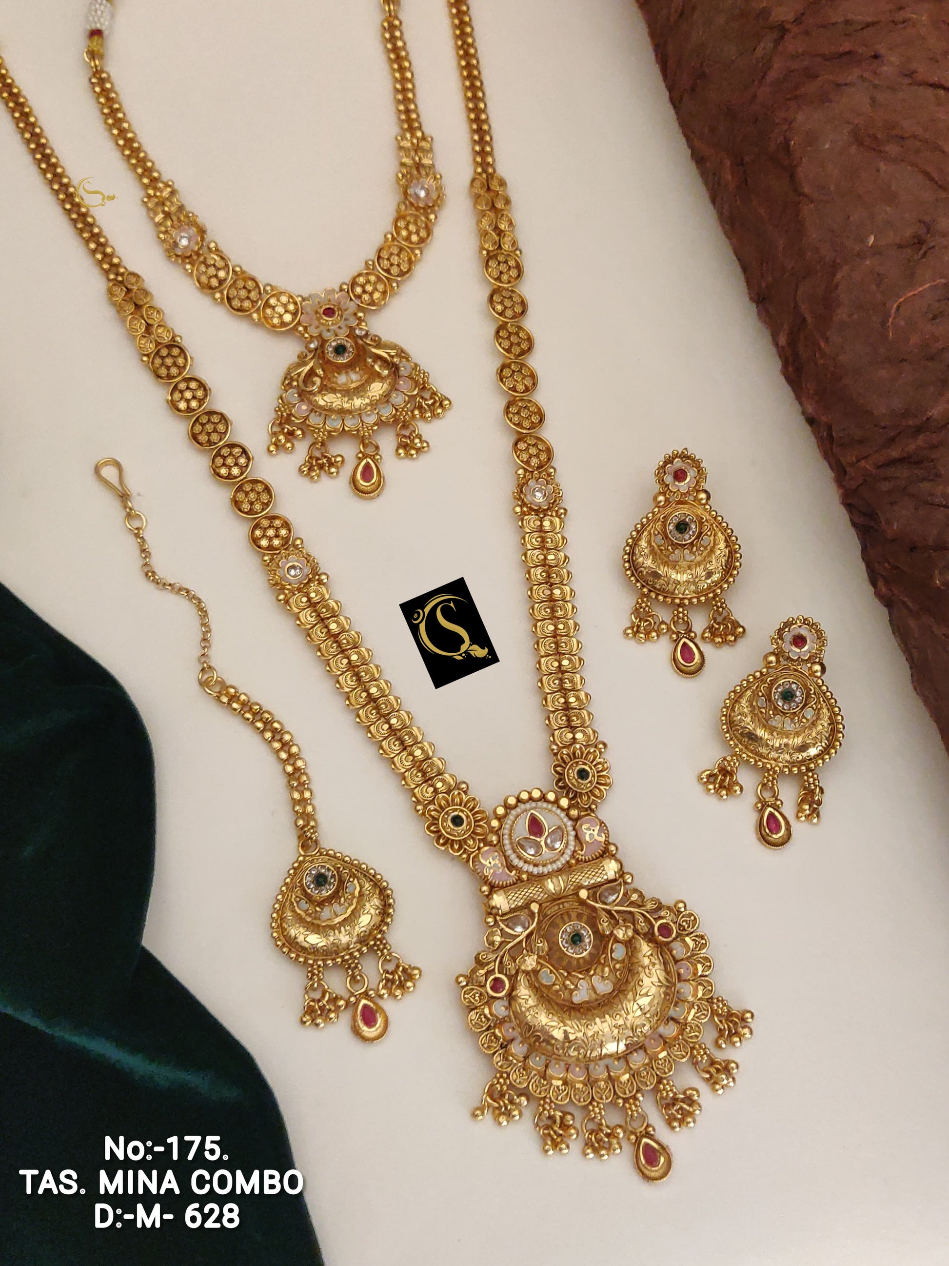 Traditional Antique Brass Gold Combo Jewellery Set 19